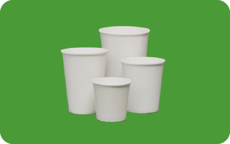 Vaso en material biodegradable blanco con tapa viajera o para domicilios de cartón o plástica. Tamaño: 4oz -7oz – 9oz -12oz -16 oz